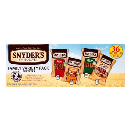 Snyder's of Hanover Pretzels 36-Count Pack, as Low as $11.27 on Amazon The Snyder's of Hanover Pretzels Variety Pack is currently $18.79 on Amazon. This pack includes 36 1.5-ounce bags in four different flavors. Opt in for Subscribe & Save and get 5% off your order when you subscribe today, or get 15% off when you subscribe to five or more items for auto-delivery to a single address.