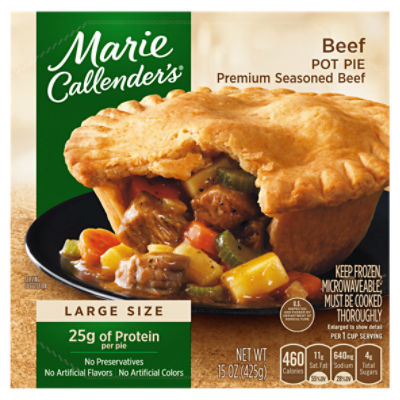 Amazon.com: marie callender pie Marie Callender's Chicken Pot Pie Style Soup 14.75 Oz. (4 Pack) 14.75 Ounce (Pack of 4) 170 $1500 ($0.25/Ounce) FREE Shipping on orders over $25 shipped by Amazon Marie Callender's Chicken Pot Pie - Made with tender white meat chicken - All Natural, Great Source of Protein - 2 Pack (8 ct, 80 oz Each )- Ready Set Gourmet Donate a Meal Program