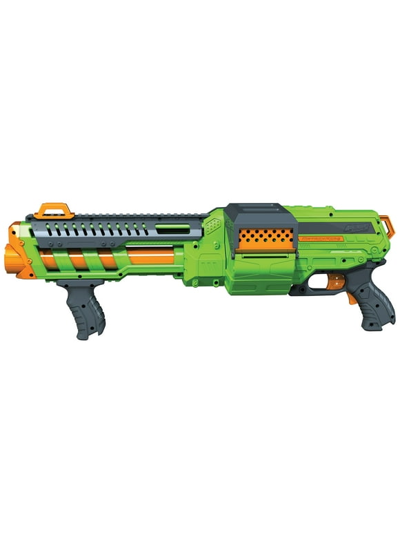 Ryan's World Foam Dart Tag Renegade Rapid Fire Barrel Blaster , Red This pump action blaster has a 40-dart rotating barrel to overpower your targets. Simply pull the handle back and forward to prime the blaster for firing - then press the trigger when ready to fire! Fire up to 40 times before stopping to reload! The Ryan's Dart Tag Renegade Rapid Fire Barrel fires darts up to 90 feet / 27 metres.