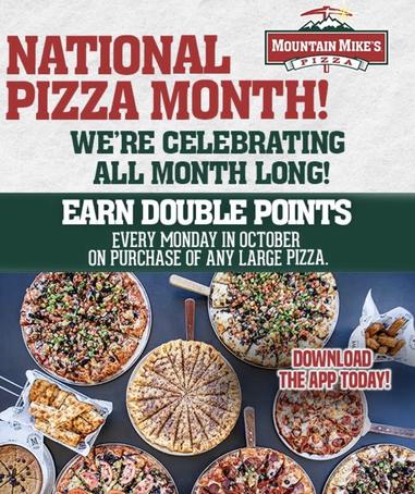 Mountain Mikes Pizza Coupon Code: Early Veterans Day offer! One day ... Mountain Mikes Pizza Coupon Codes, Printable coupons, and Promo Codes Food, Beverage, & Restaurant Coupons 7 Coupon Codes Available 4 Online Coupons 3 Coupon Codes added this week New Coupon. Mountain Mikes Pizza. Early Veterans Day offer! One day only! Buy one large pizza, get $11 off the purchase of a 2nd large pizza